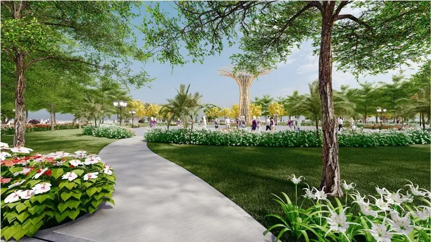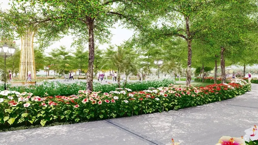 - Vườn cảnh quan & đường dạo bộ ven hồ: Lối đi xanh uốn lượn, kết nối các phân khu.